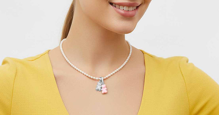 Náhrdelník s medvídkem z přírodních sladkovodních perel